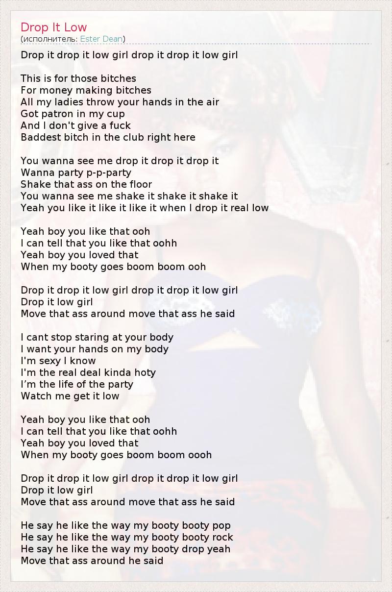 А как ты думаешь, о чем песня "Drop It Low" ?
