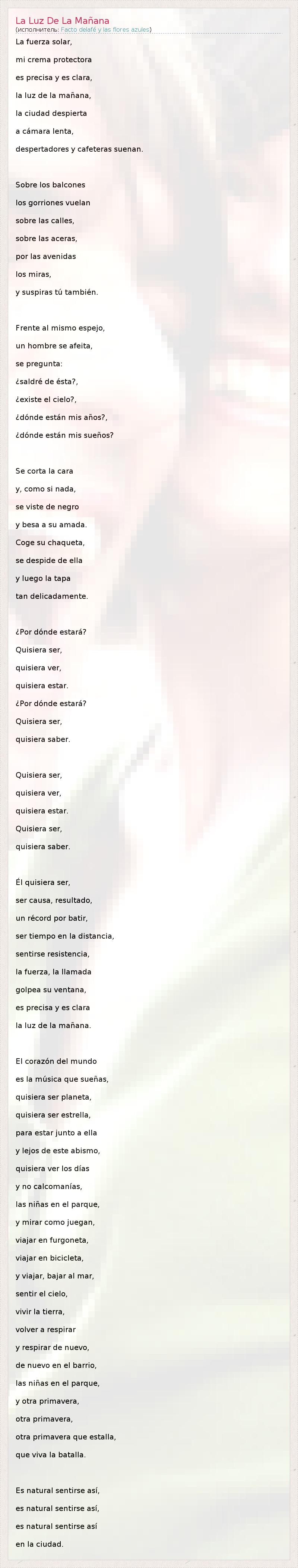 А как ты думаешь, о чем песня "La Luz De La Mañana" ?