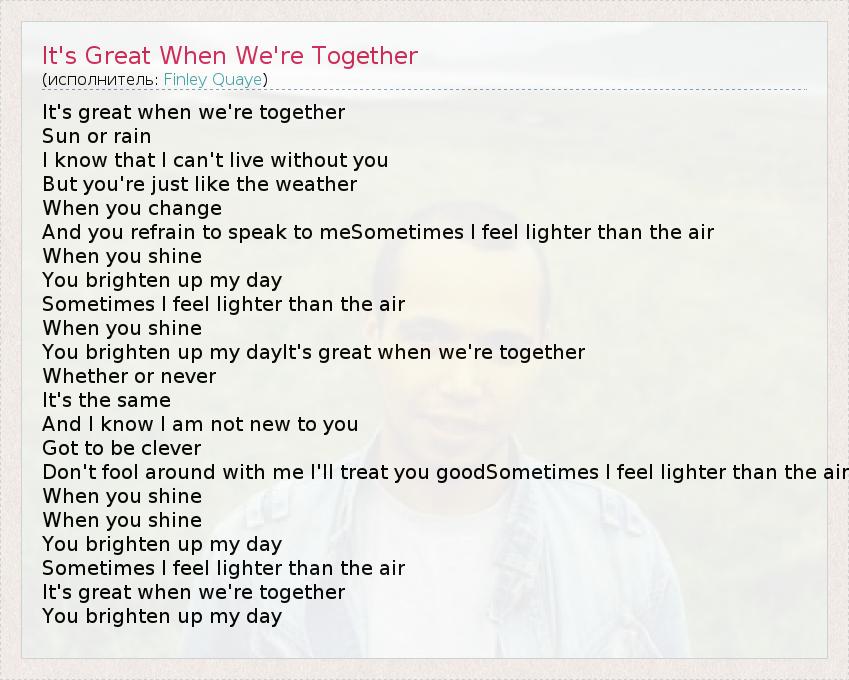 А как ты думаешь, о чем песня "It's Great When We're Together" ?
