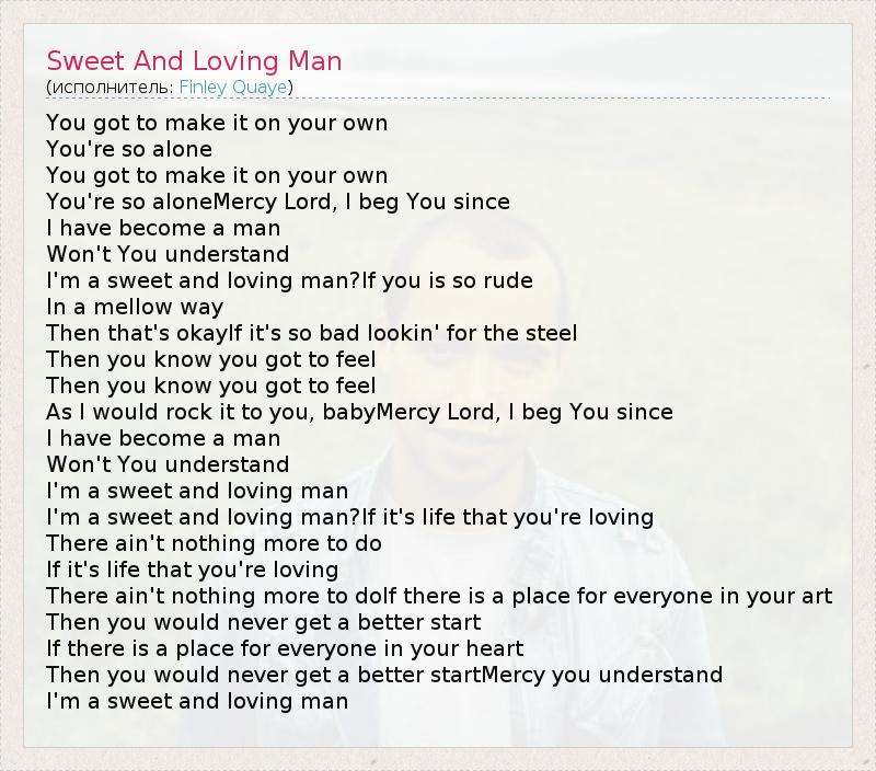 А как ты думаешь, о чем песня "Sweet And Loving Man" ?