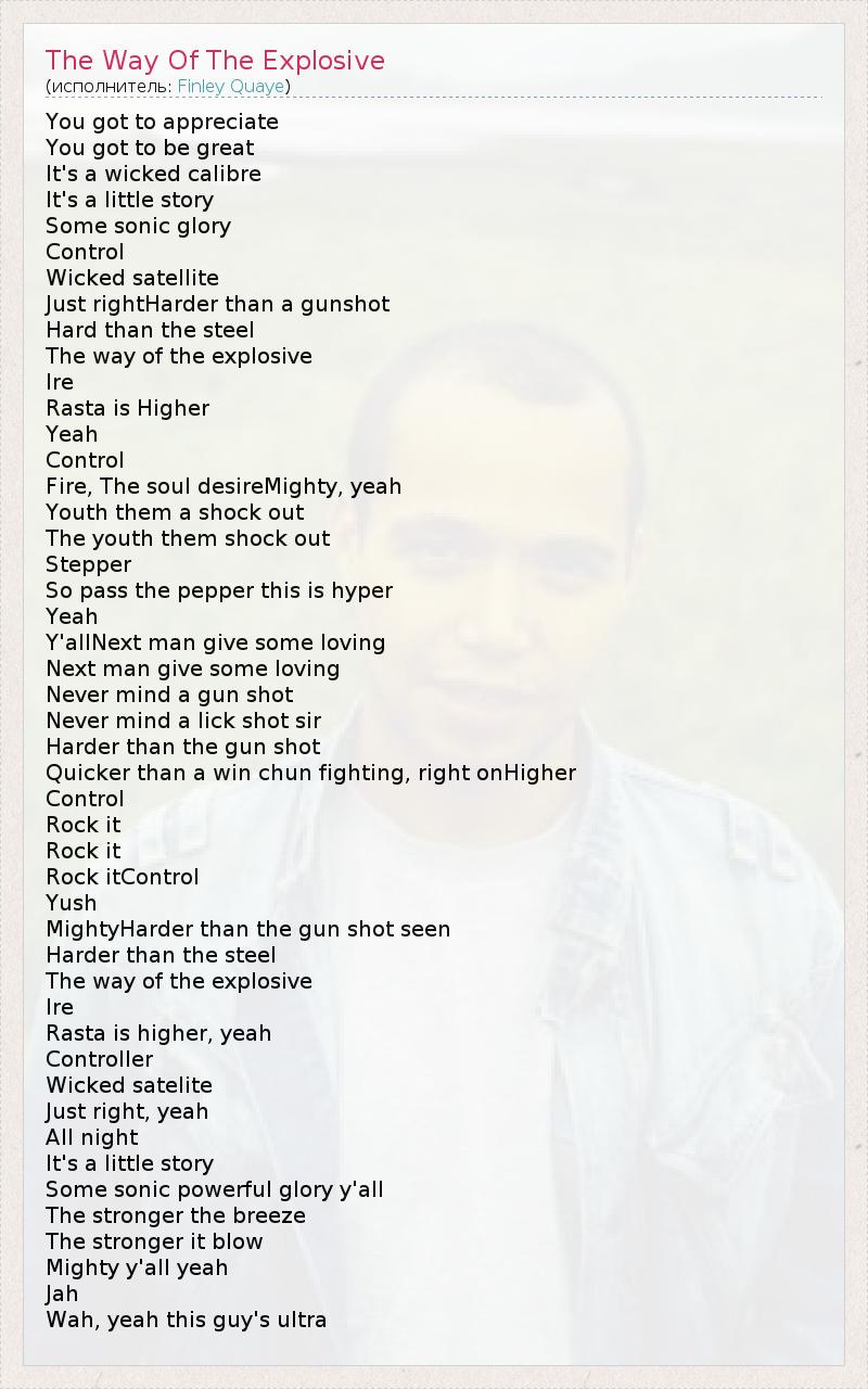 ГлавнаяИсполнителиFinley QuayeThe Way Of The Explosive