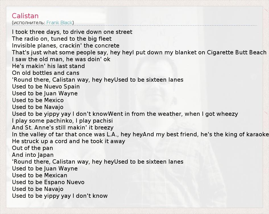 'Round there, Calistan way, hey heyUsed to be sixteen lanes