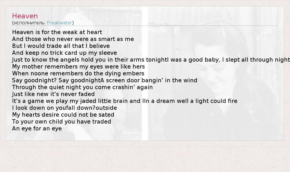 Just to know the angels hold you in their arms tonightI was a good baby, I slept all through night