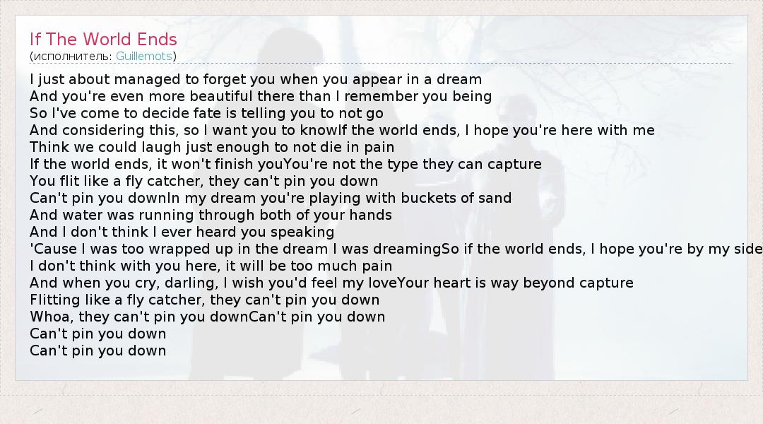 А как ты думаешь, о чем песня "If The World Ends" ?