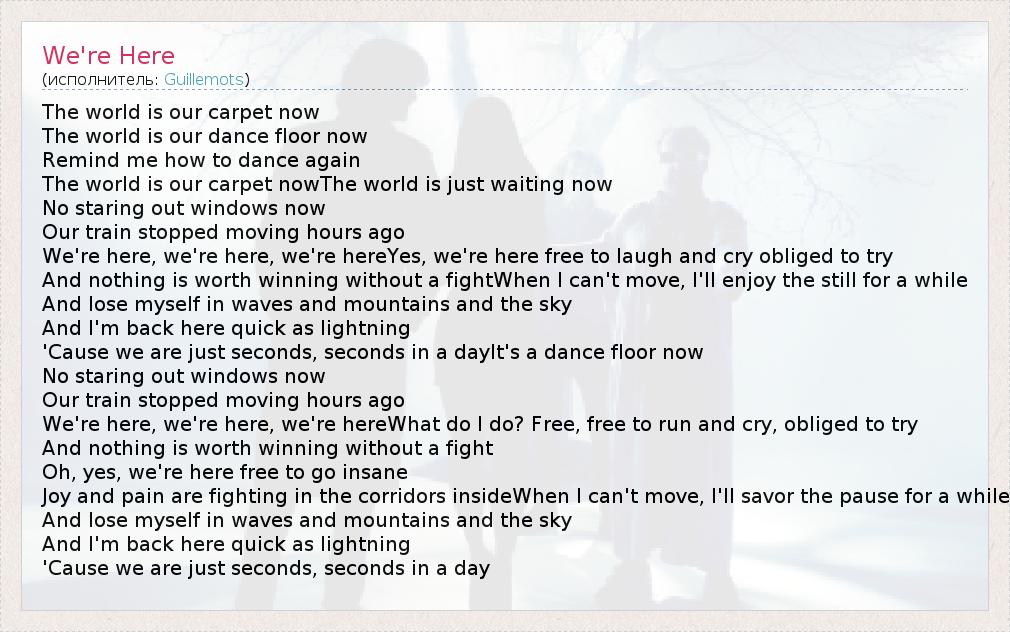 А как ты думаешь, о чем песня "We're Here" ?