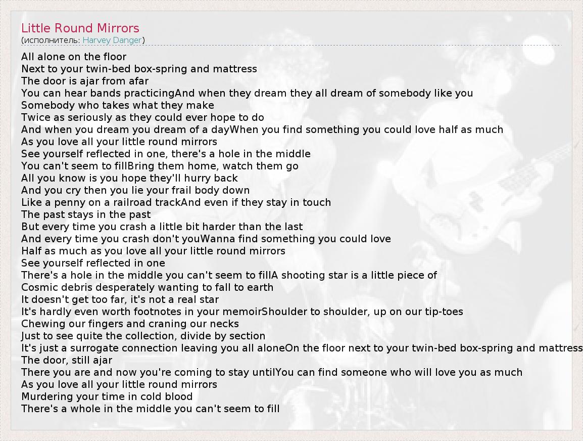 А как ты думаешь, о чем песня "Little Round Mirrors" ?