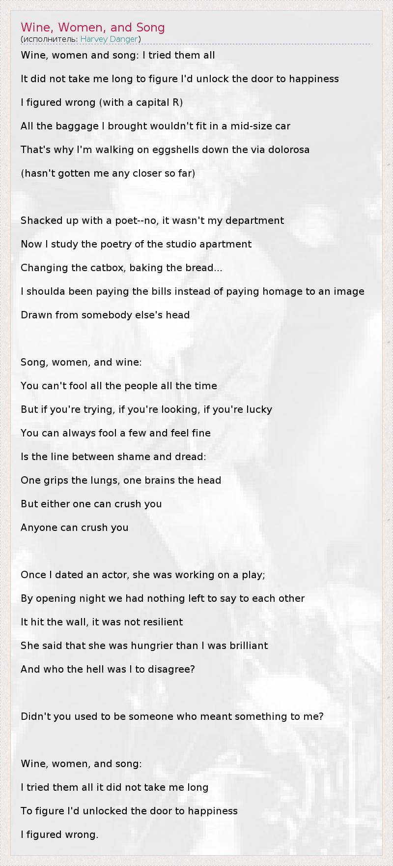 А как ты думаешь, о чем песня "Wine, Women, and Song" ?