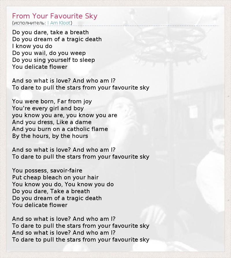А как ты думаешь, о чем песня "From Your Favourite Sky" ?