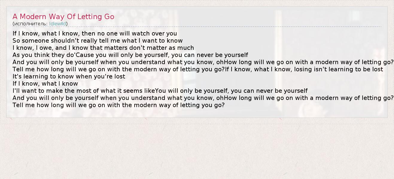 А как ты думаешь, о чем песня "A Modern Way Of Letting Go" ?
