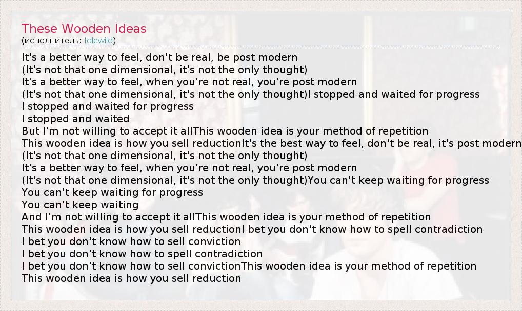 А как ты думаешь, о чем песня "These Wooden Ideas" ?