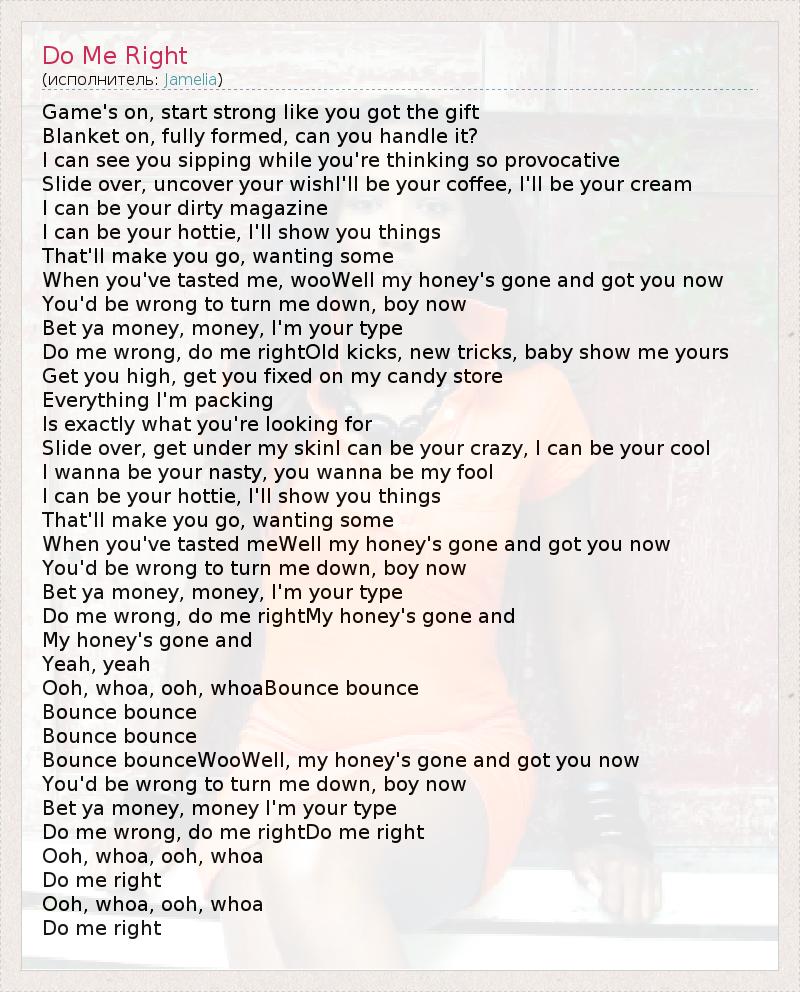 А как ты думаешь, о чем песня "Do Me Right" ?