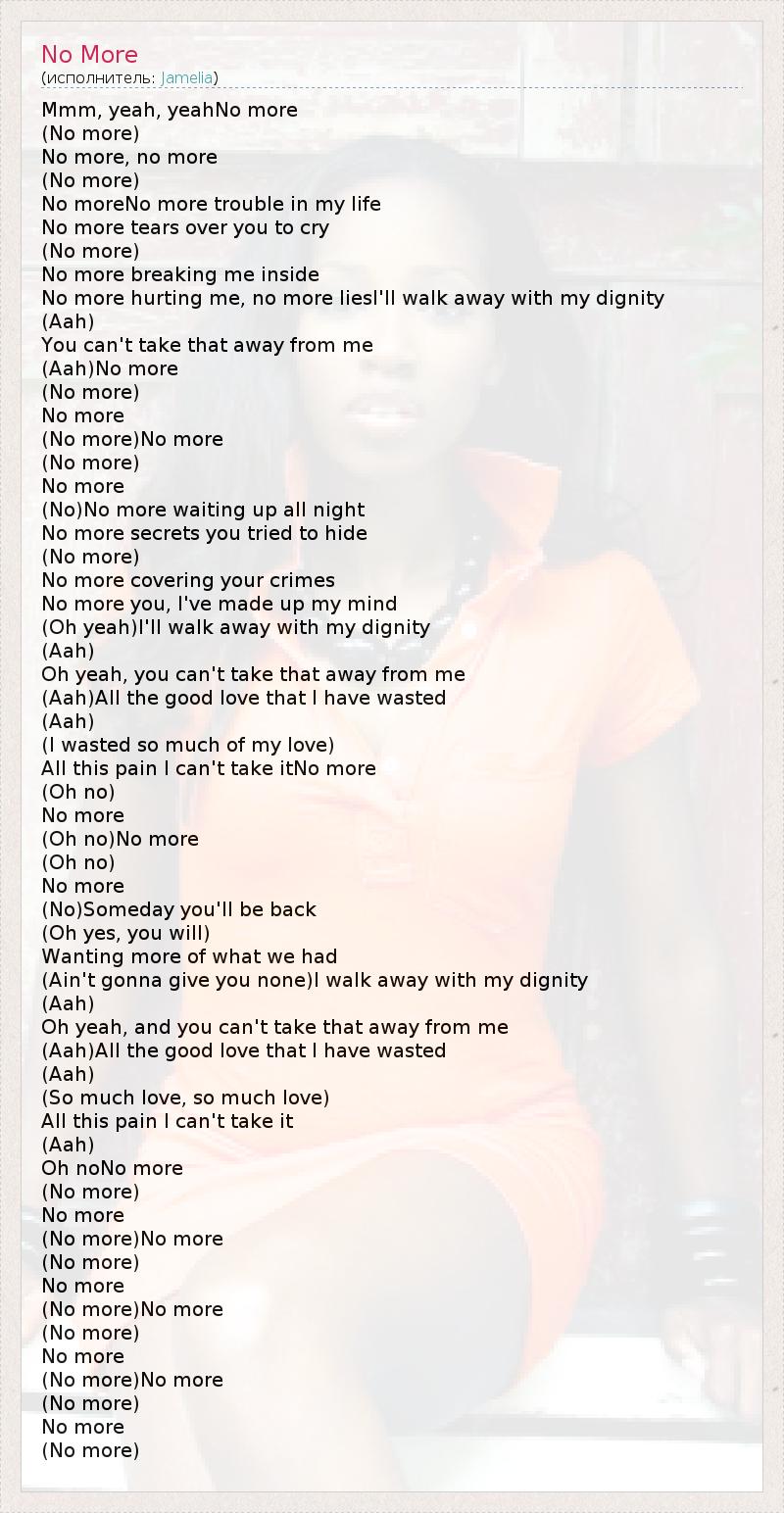 Это интересно:Jamelia Niela Davis (Джамелия Нила Девис) - британская R&B-исполнительница. В 2003 г. с песней Superstar Jamelia ворвалась в хит-парады многих европейских стран, а в Австралии и Новой Зеландии даже возглавила их. В пятнадцатилетнем возрасте на лейбле Parlophone Jamelia записывает свои первые песни, а в апреле 1999 года Jamelia выпускает сингл So High. Второй сингл I Do уже попадает в британский Топ 40. В 2000 г. выходит альбом... продолжение