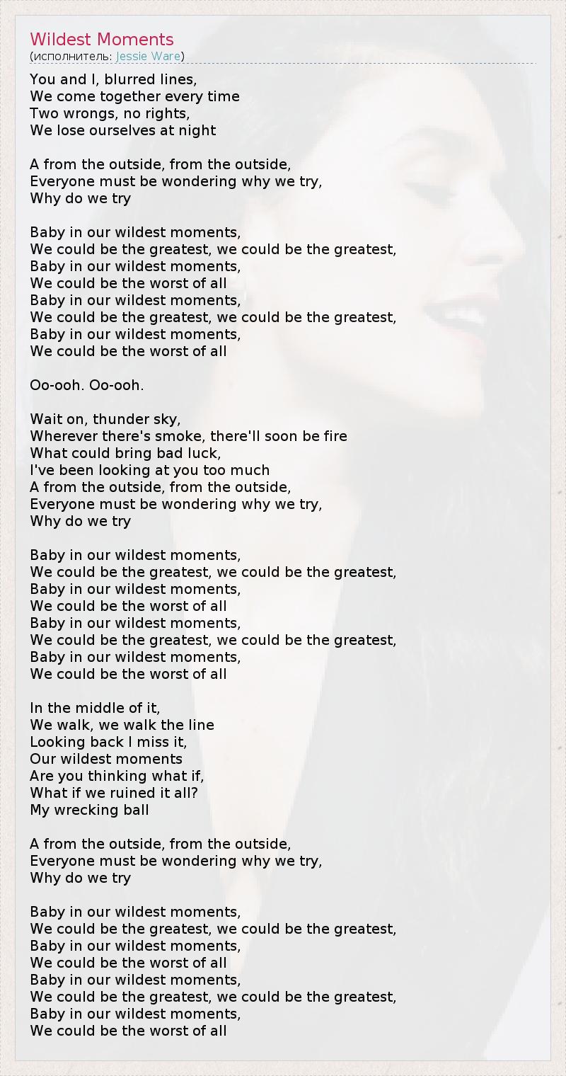 А как ты думаешь, о чем песня "Wildest Moments" ?
