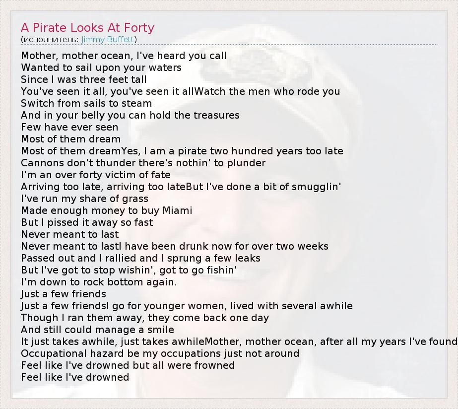 А как ты думаешь, о чем песня "A Pirate Looks At Forty" ?