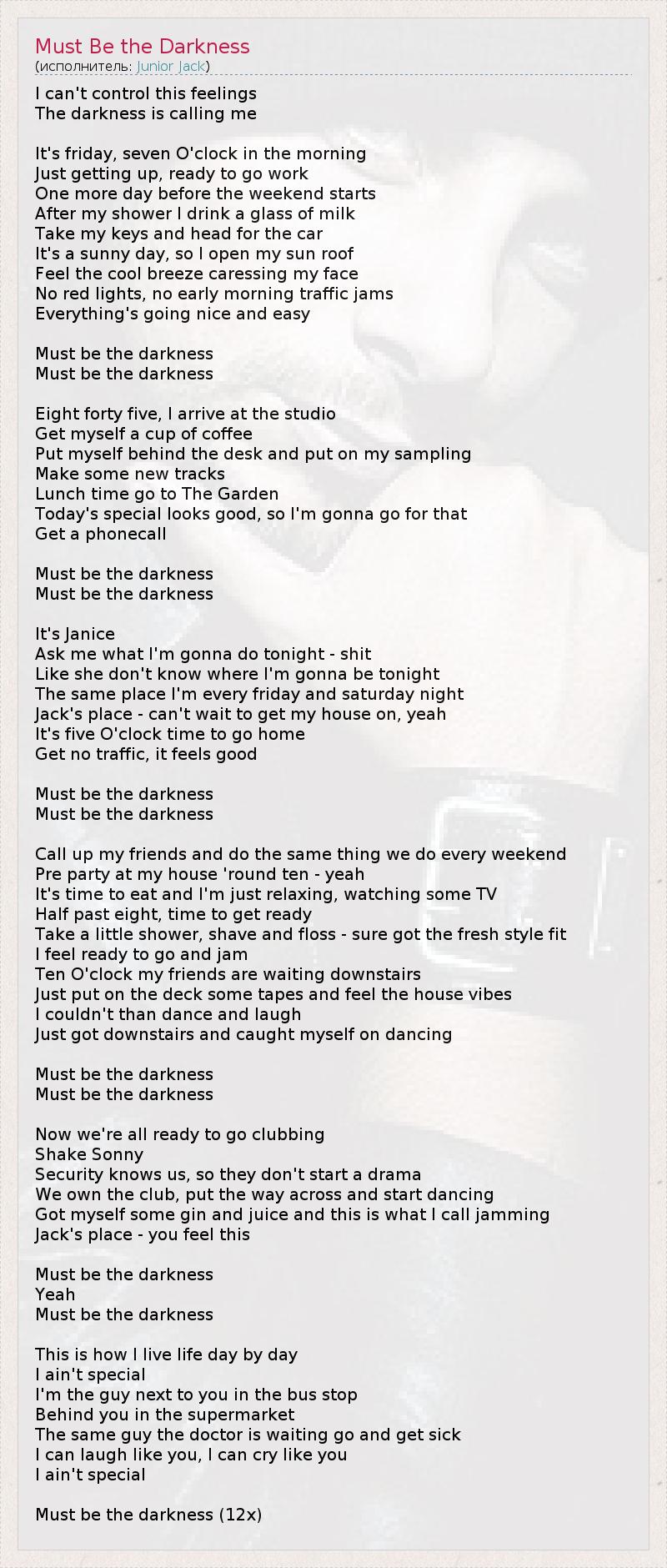 А как ты думаешь, о чем песня "Must Be the Darkness" ?