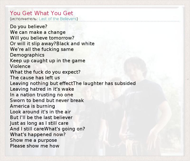 А как ты думаешь, о чем песня "You Get What You Get" ?