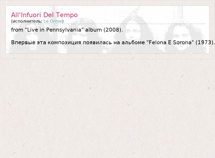 ГлавнаяИсполнителиLe OrmeAll'Infuori Del Tempo