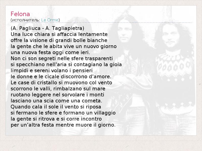 Это интересно:Le Orme - итальянская симфопроговая группа. Название группы в переводе с итальянского означает "Следы". ИсторияОчередной пример того, как из достаточно обычной бит/психоделической группы конца 60-х может получиться культовая симфо-проговая команда. Свое же лицо музыканты Le Orme начали создавать чуть ли не раньше всех симфо-прогерров на Аппенинском полуострове. В 1966 году в небольшом... продолжение