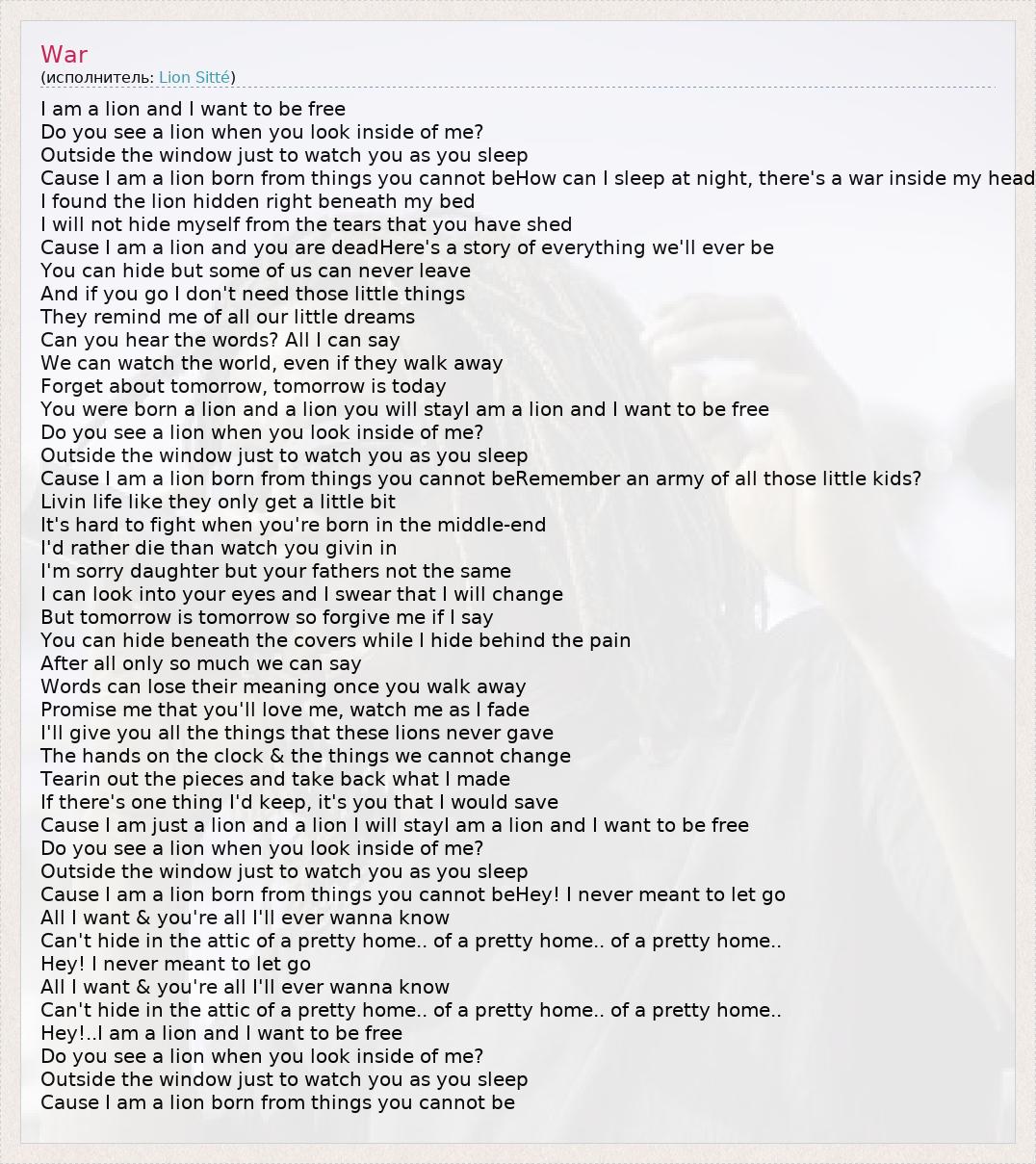 Cause I am a lion born from things you cannot beHow can I sleep at night, there's a war inside my head