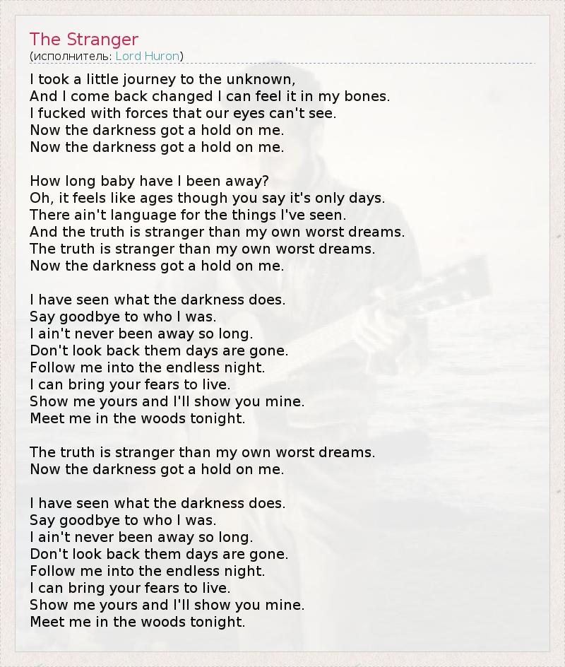 А как ты думаешь, о чем песня "The Stranger" ?