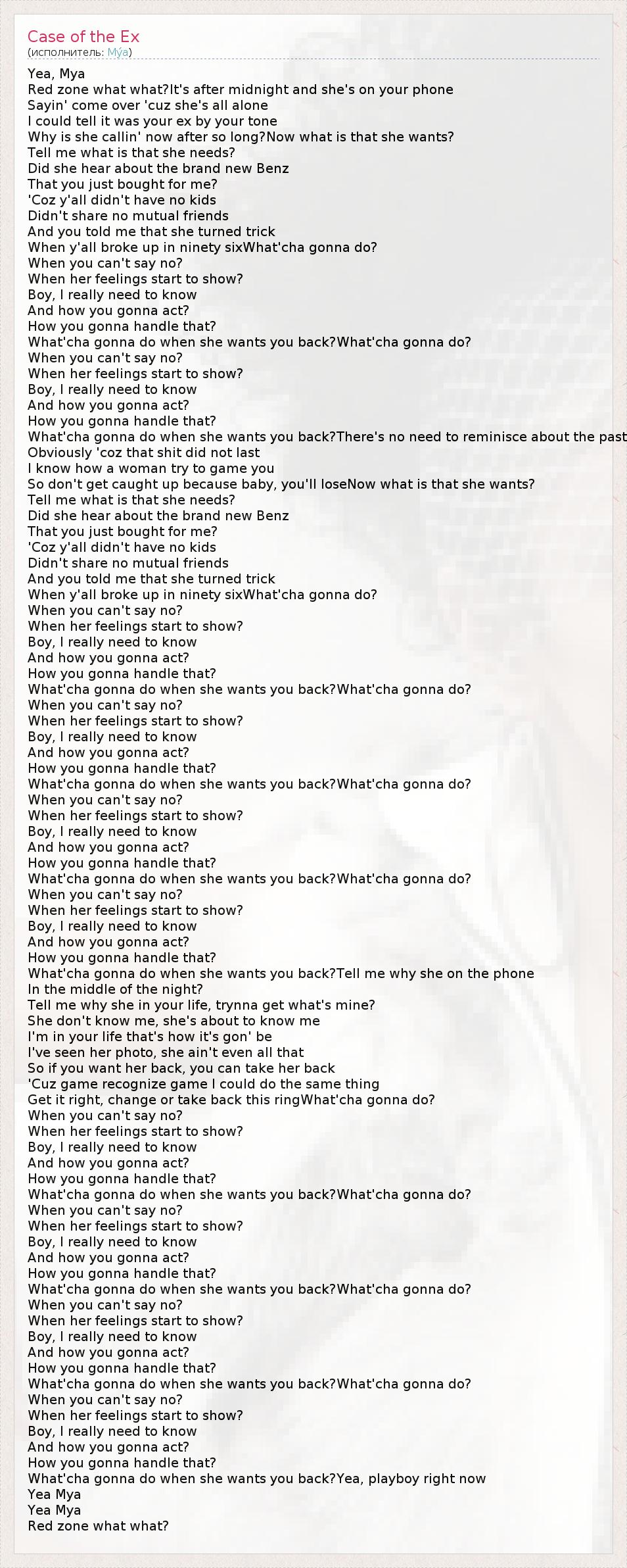 А как ты думаешь, о чем песня "Case of the Ex" ?