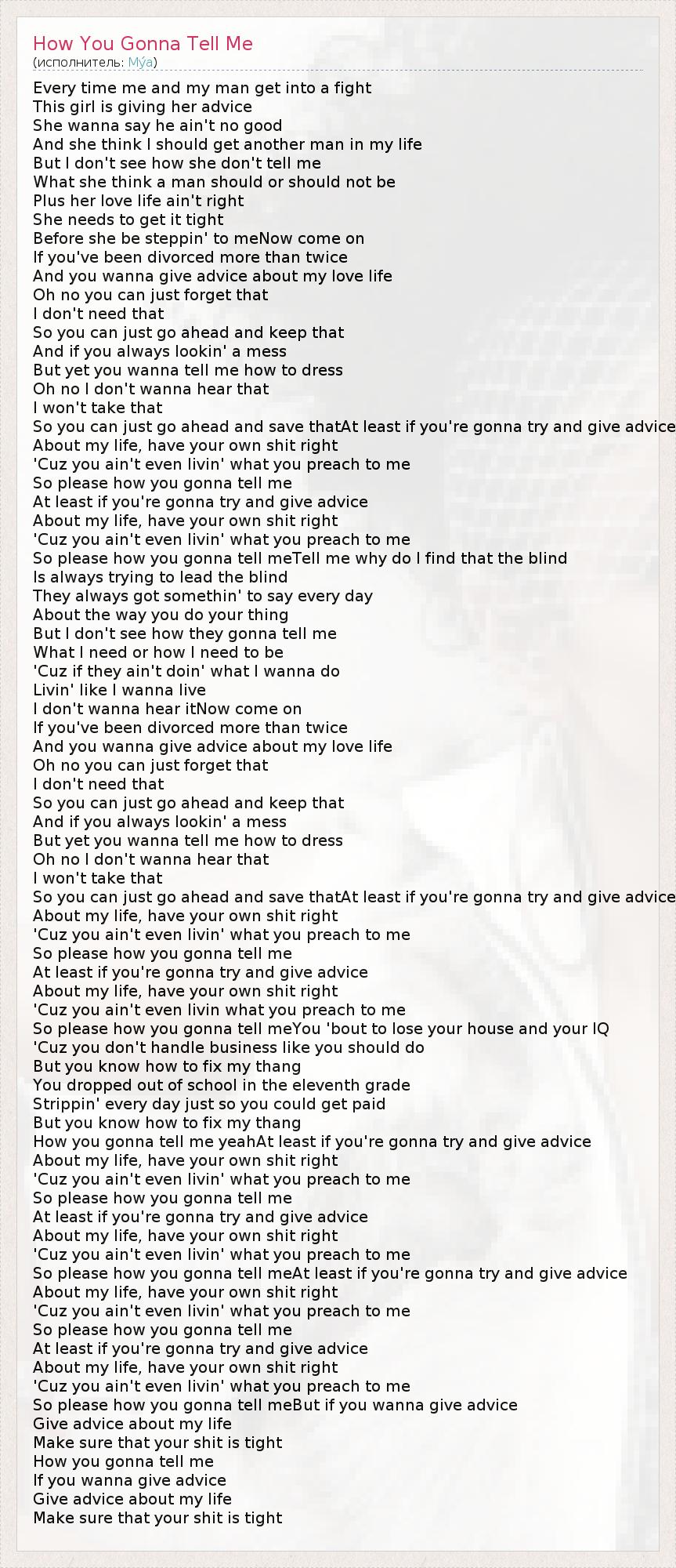 So please how you gonna tell meBut if you wanna give advice