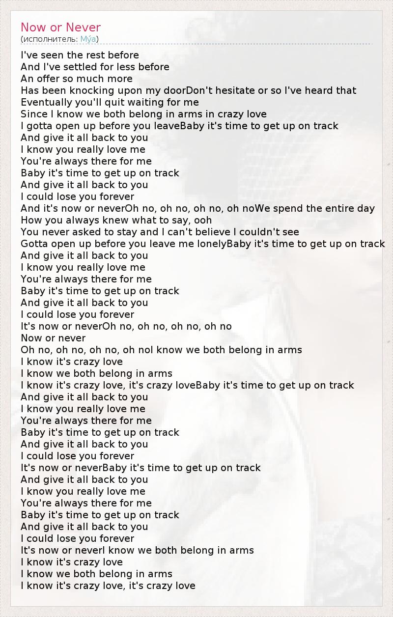 And it's now or neverOh no, oh no, oh no, oh noWe spend the entire day