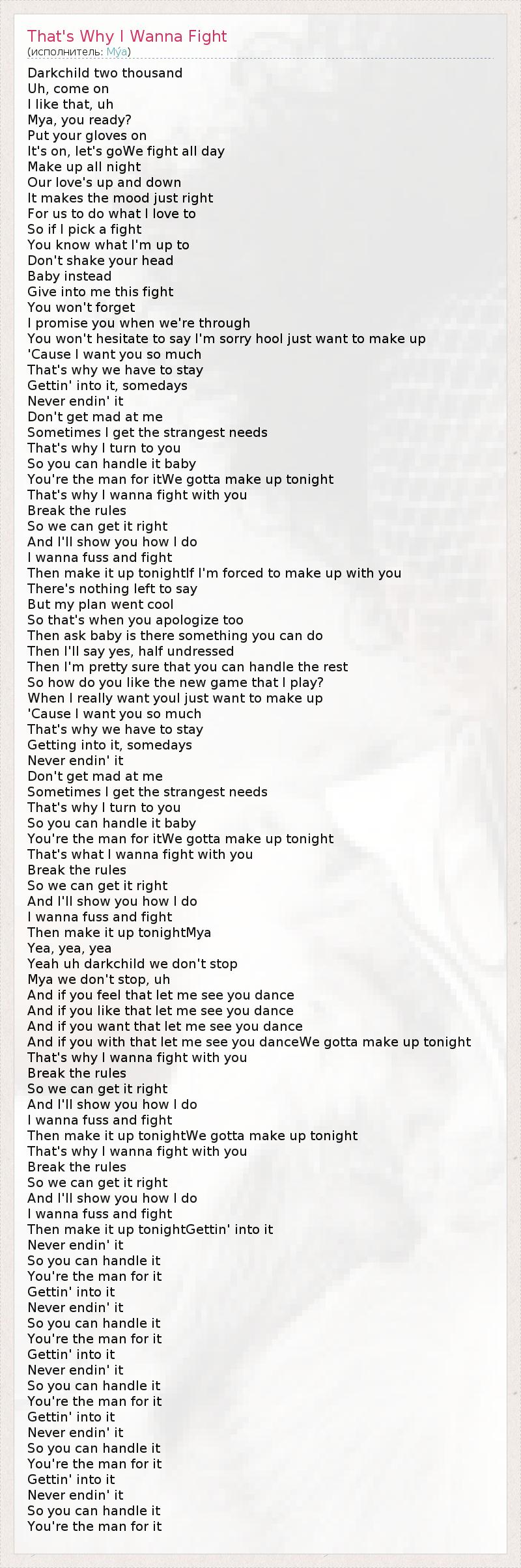 А как ты думаешь, о чем песня "That's Why I Wanna Fight" ?