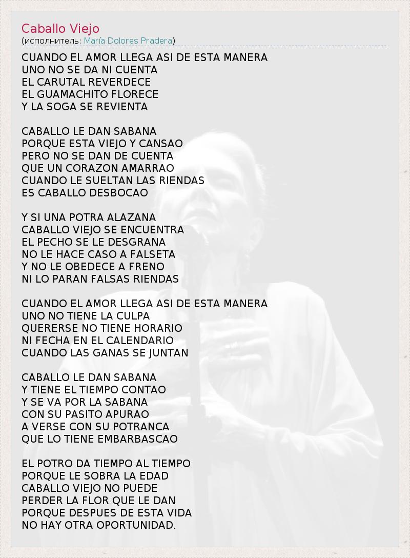 А как ты думаешь, о чем песня "Caballo Viejo" ?