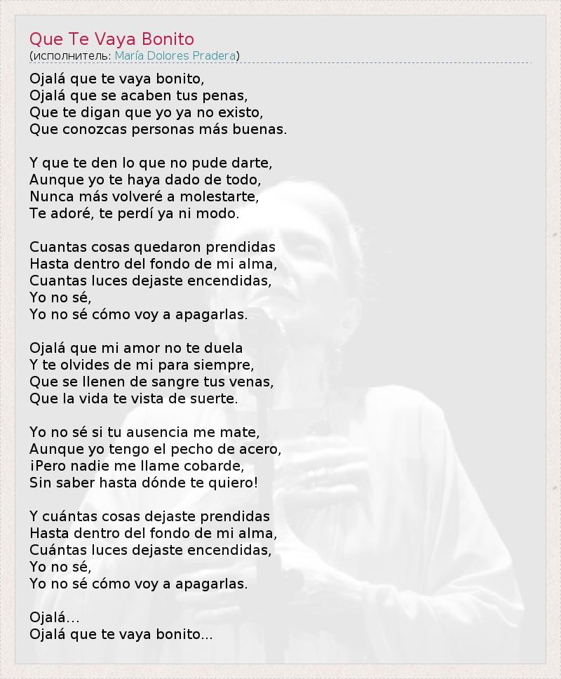 А как ты думаешь, о чем песня "Que Te Vaya Bonito" ?