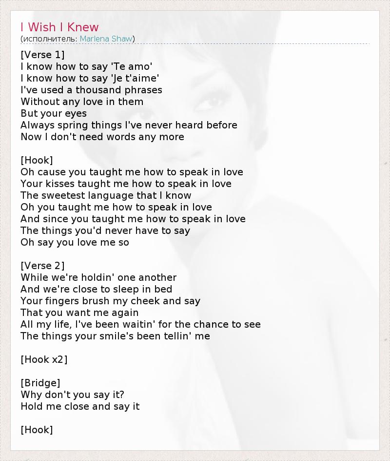 А как ты думаешь, о чем песня "I Wish I Knew" ?