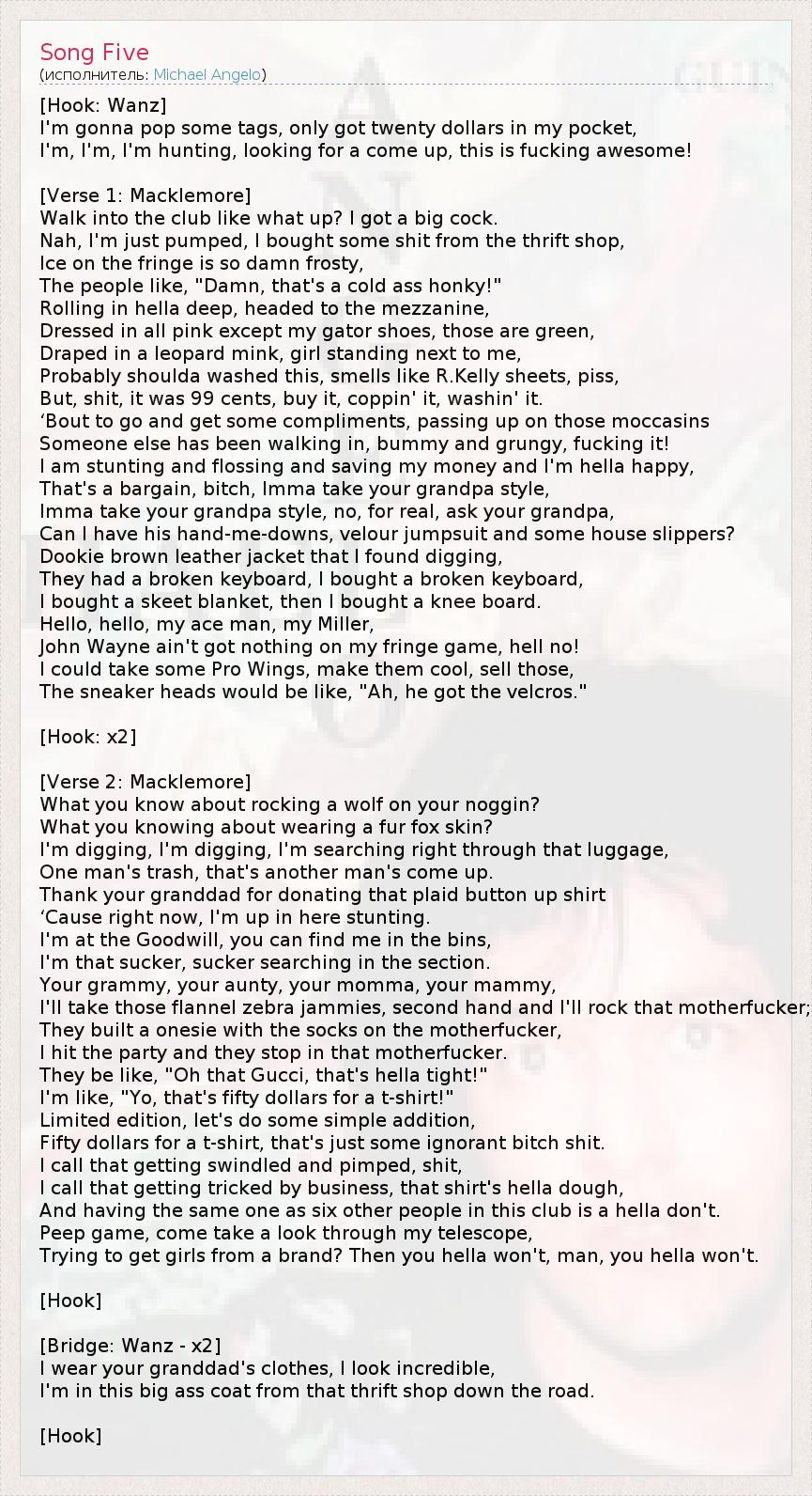 I'm gonna pop some tags, only got twenty dollars in my pocket,