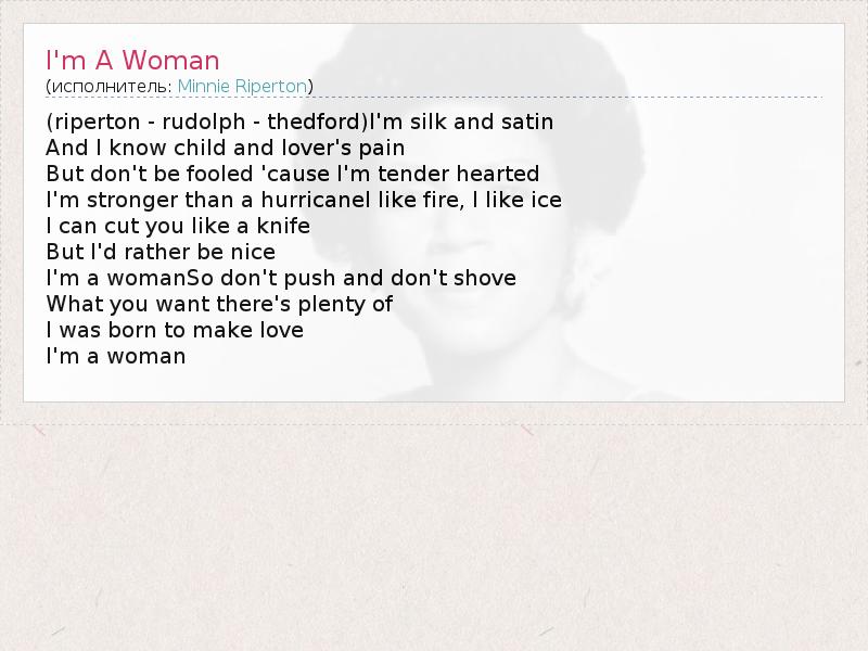А как ты думаешь, о чем песня "I'm A Woman" ?