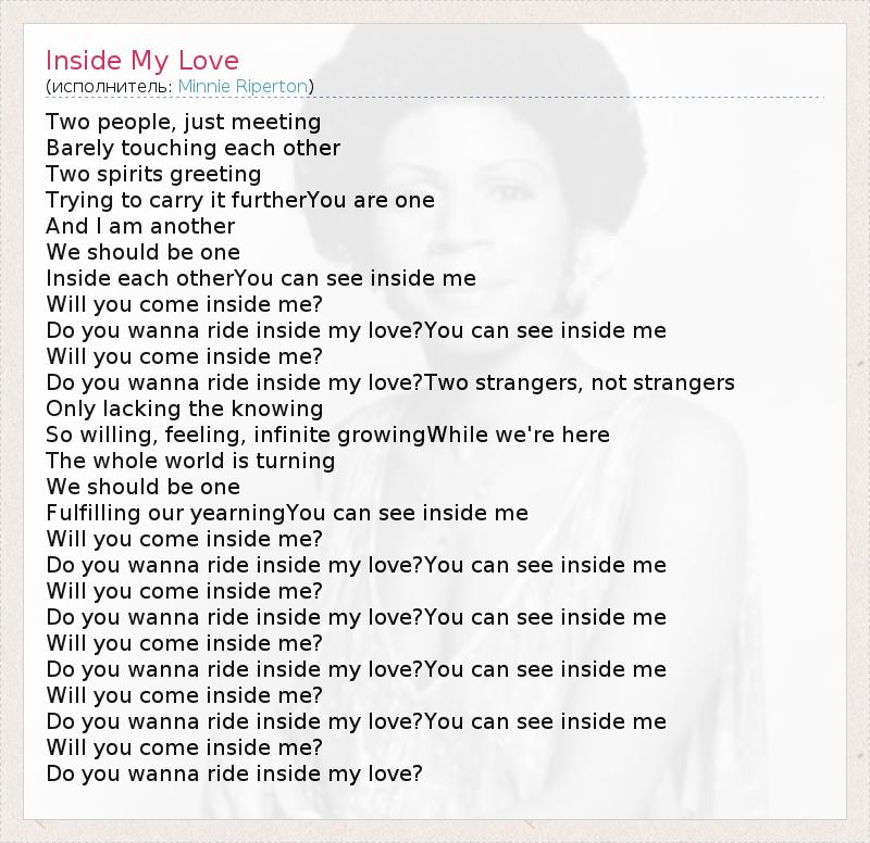 Do you wanna ride inside my love?Two strangers, not strangers