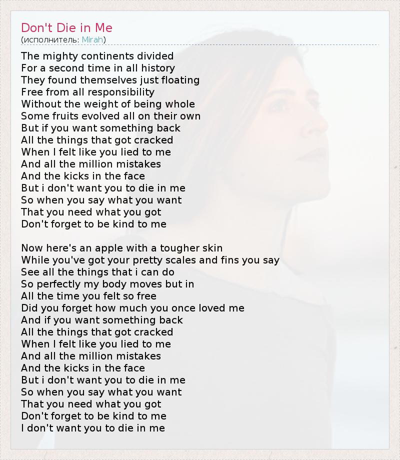А как ты думаешь, о чем песня "Don't Die in Me" ?