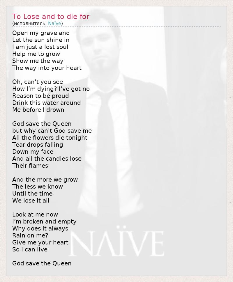 ГлавнаяИсполнителиNaïveTo Lose and to die for
