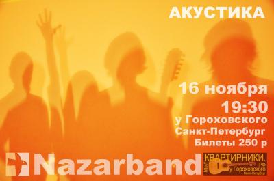 Nazarband (Nazar & the Band), он же Назар, он же Сергей Назаров — стихи, музыка, голос, двенадцатиструнная гитара.Сергей Назаров - российский артист и путешественник, композитор, поэт и исполнитель песен собственного сочинения. С 2005 года — фронтмен группы Nazarband, активно концертирующей в России и за её пределами.Коллектив Nazarband - один из ярких представителей современного российского... продолжение
