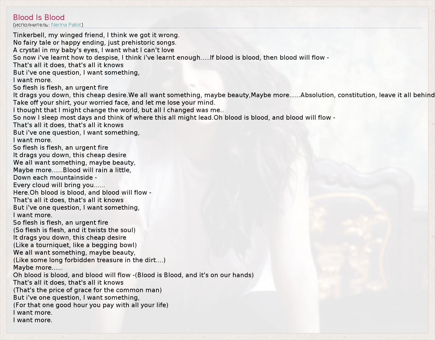 А как ты думаешь, о чем песня "Blood Is Blood" ?