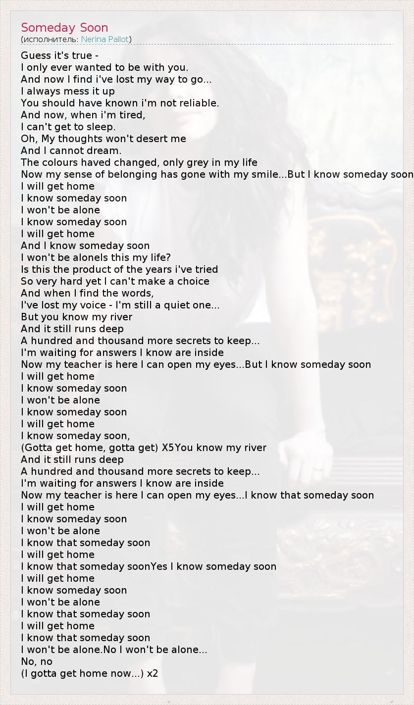 А как ты думаешь, о чем песня "Someday Soon" ?
