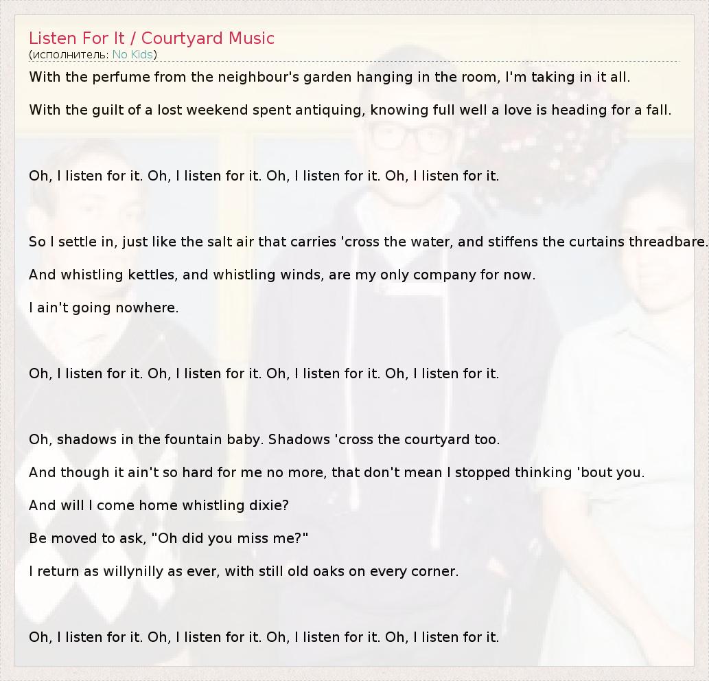 А как ты думаешь, о чем песня "Listen For It / Courtyard Music" ?