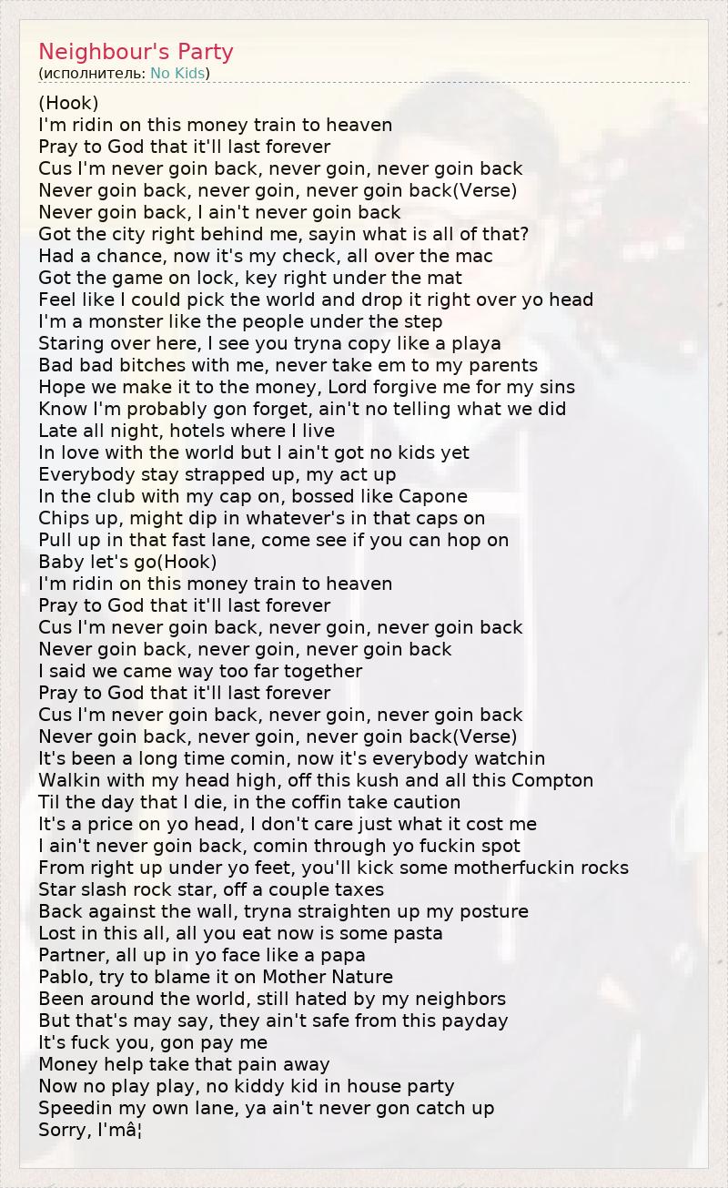 А как ты думаешь, о чем песня "Neighbour's Party" ?