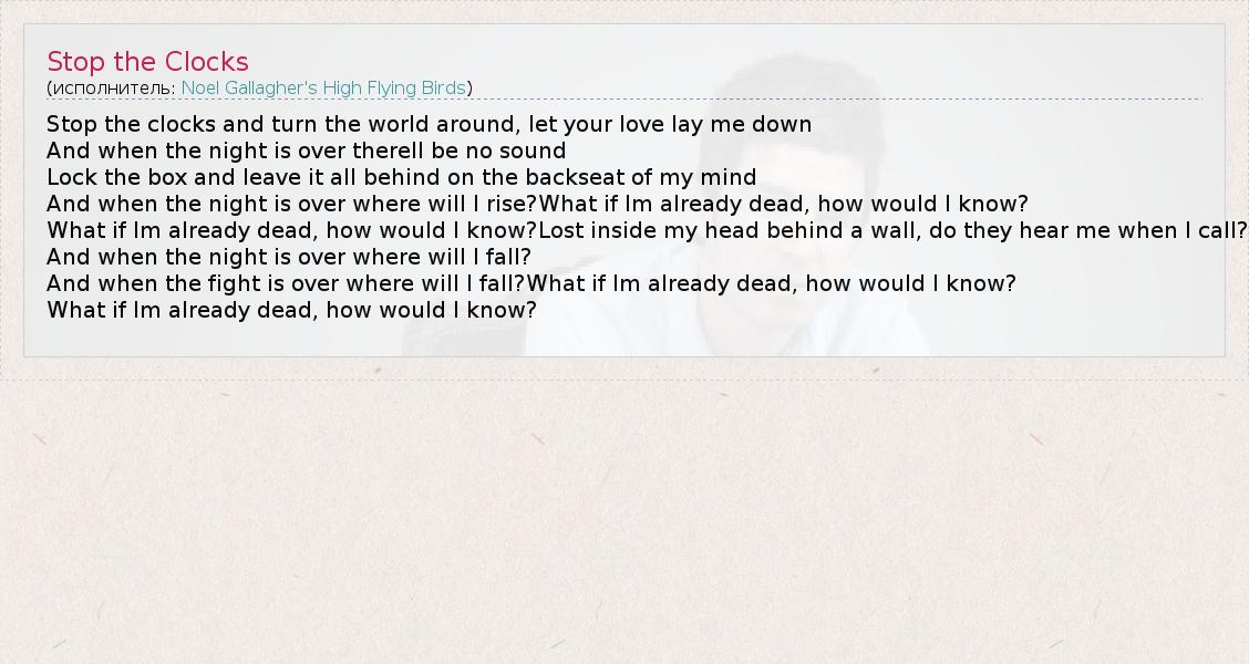 А как ты думаешь, о чем песня "Stop the Clocks" ?