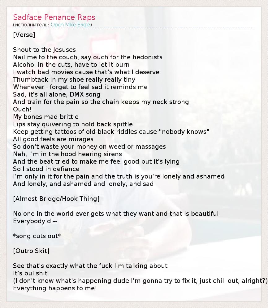 А как ты думаешь, о чем песня "Sadface Penance Raps" ?