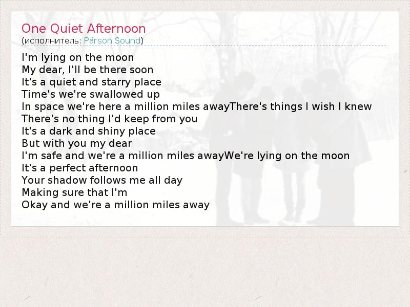 А как ты думаешь, о чем песня "One Quiet Afternoon" ?
