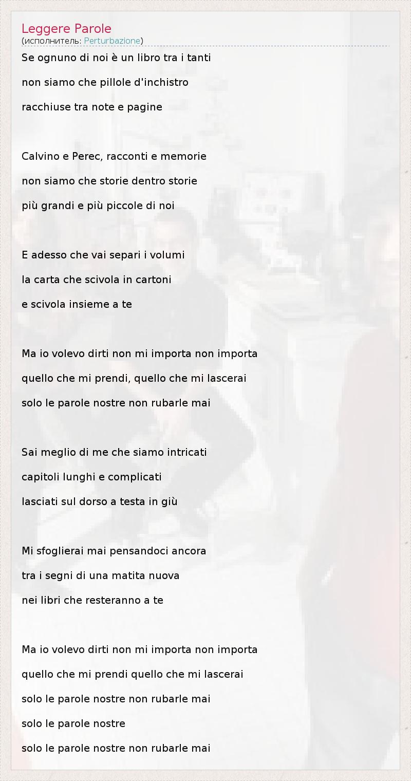 А как ты думаешь, о чем песня "Leggere Parole" ?