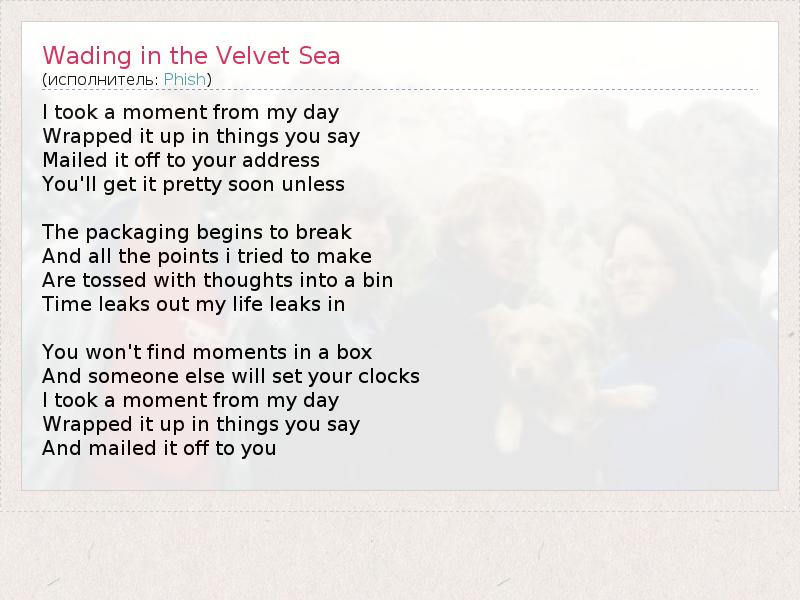А как ты думаешь, о чем песня "Wading in the Velvet Sea" ?