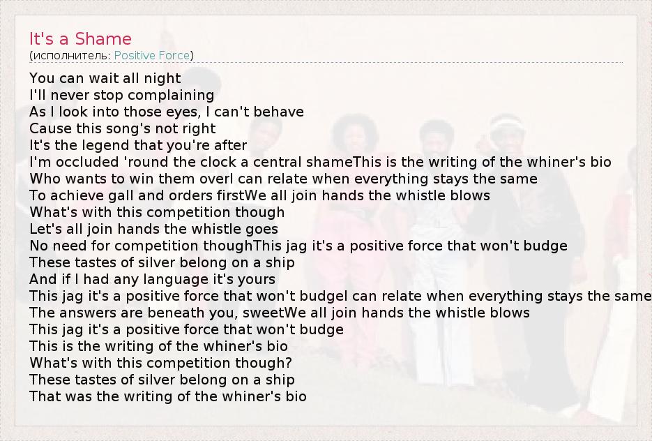 А как ты думаешь, о чем песня "It's a Shame" ?
