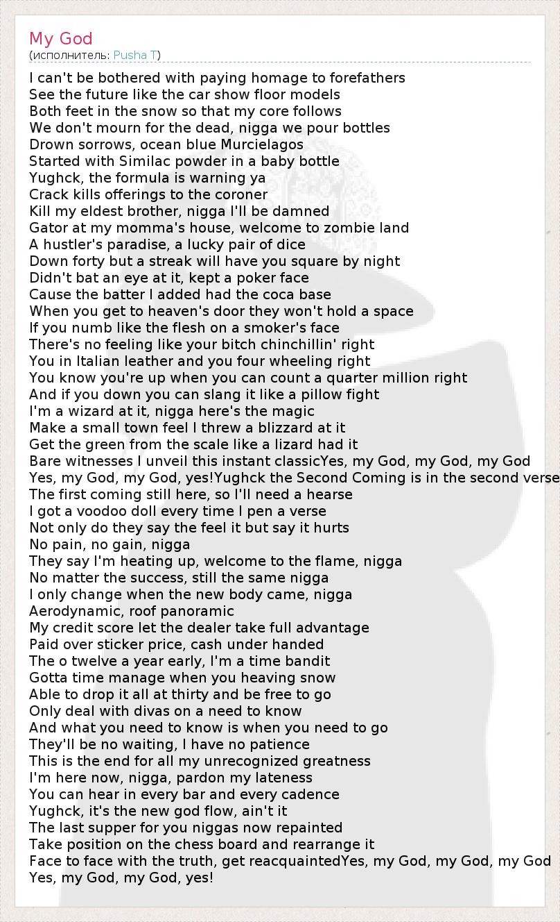Bare witnesses I unveil this instant classicYes, my God, my God, my God