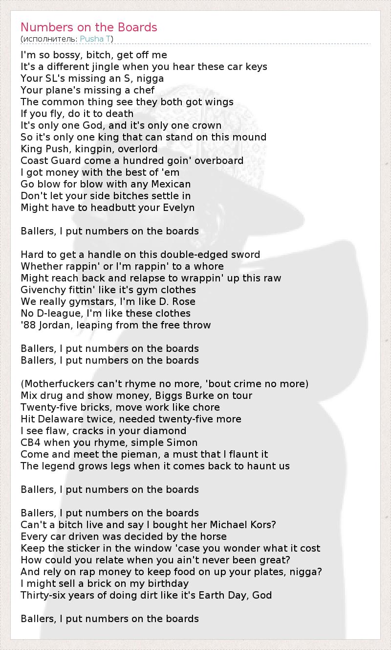 ГлавнаяИсполнителиPusha TNumbers on the Boards
