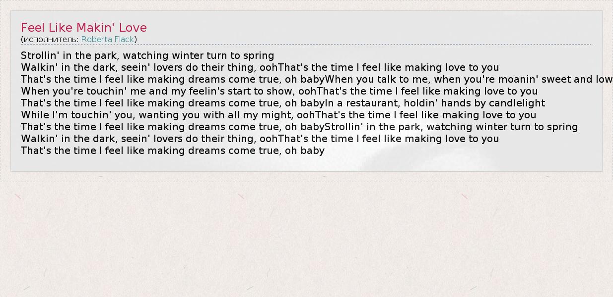 А как ты думаешь, о чем песня "Feel Like Makin' Love" ?